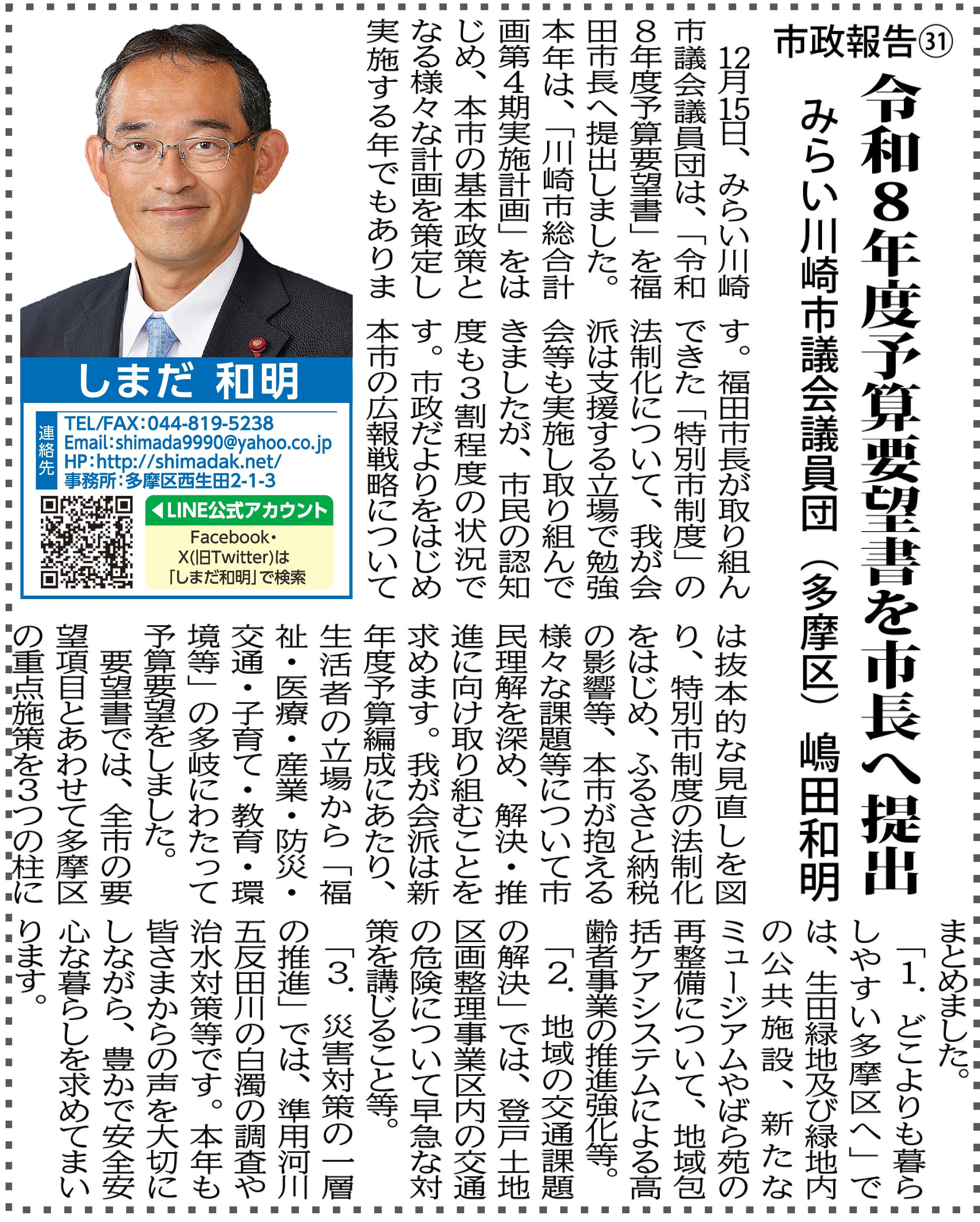 市議会報告 みらい川崎市議会議員団 |