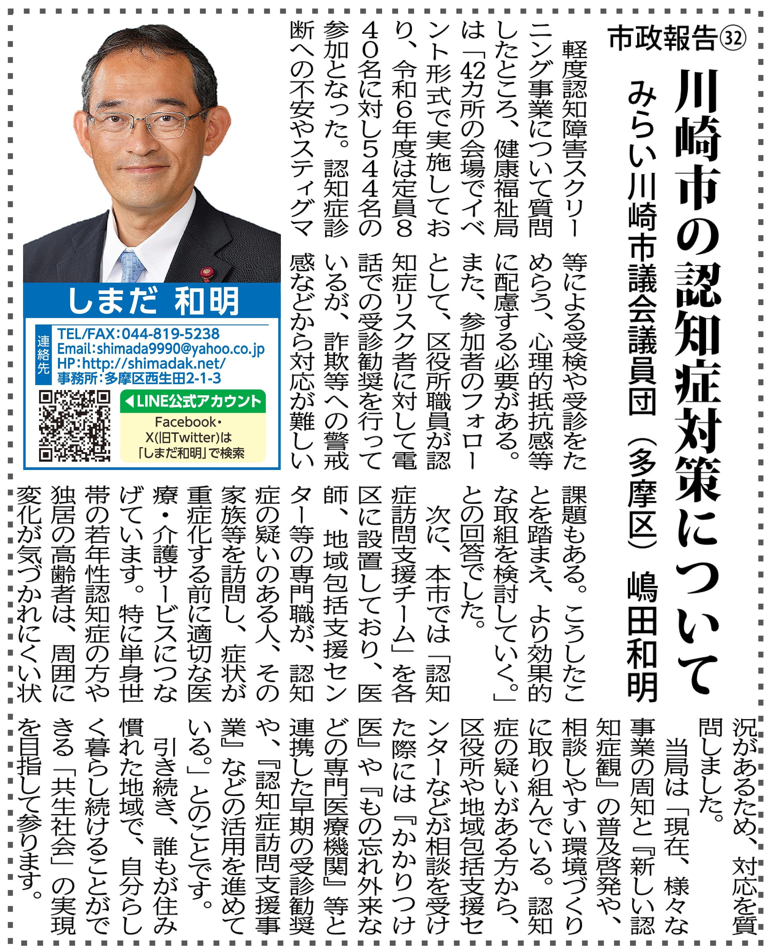 市政報告㉜ 川崎市の認知症対策について