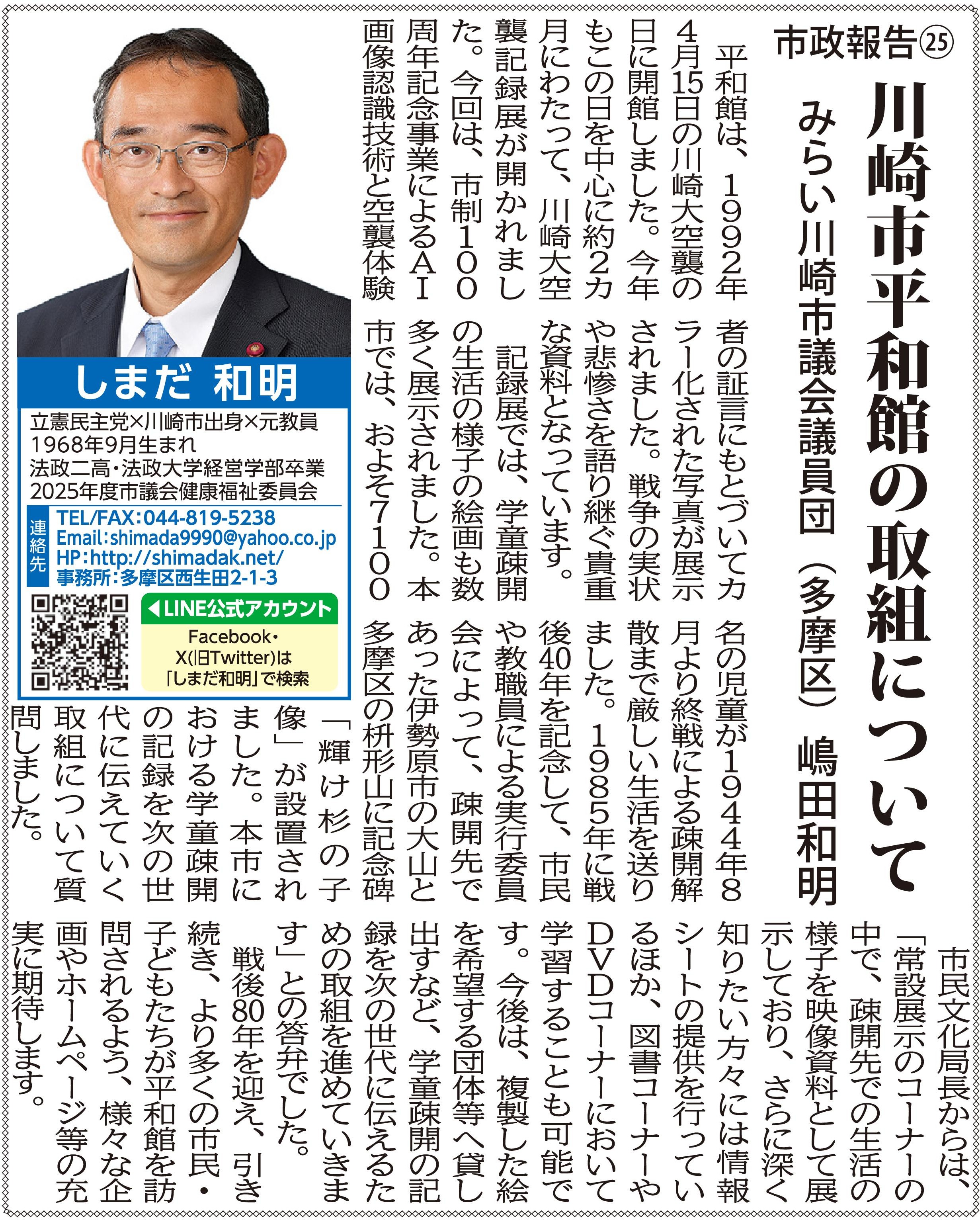 市政報告㉕ 川崎市平和館の取組について |
