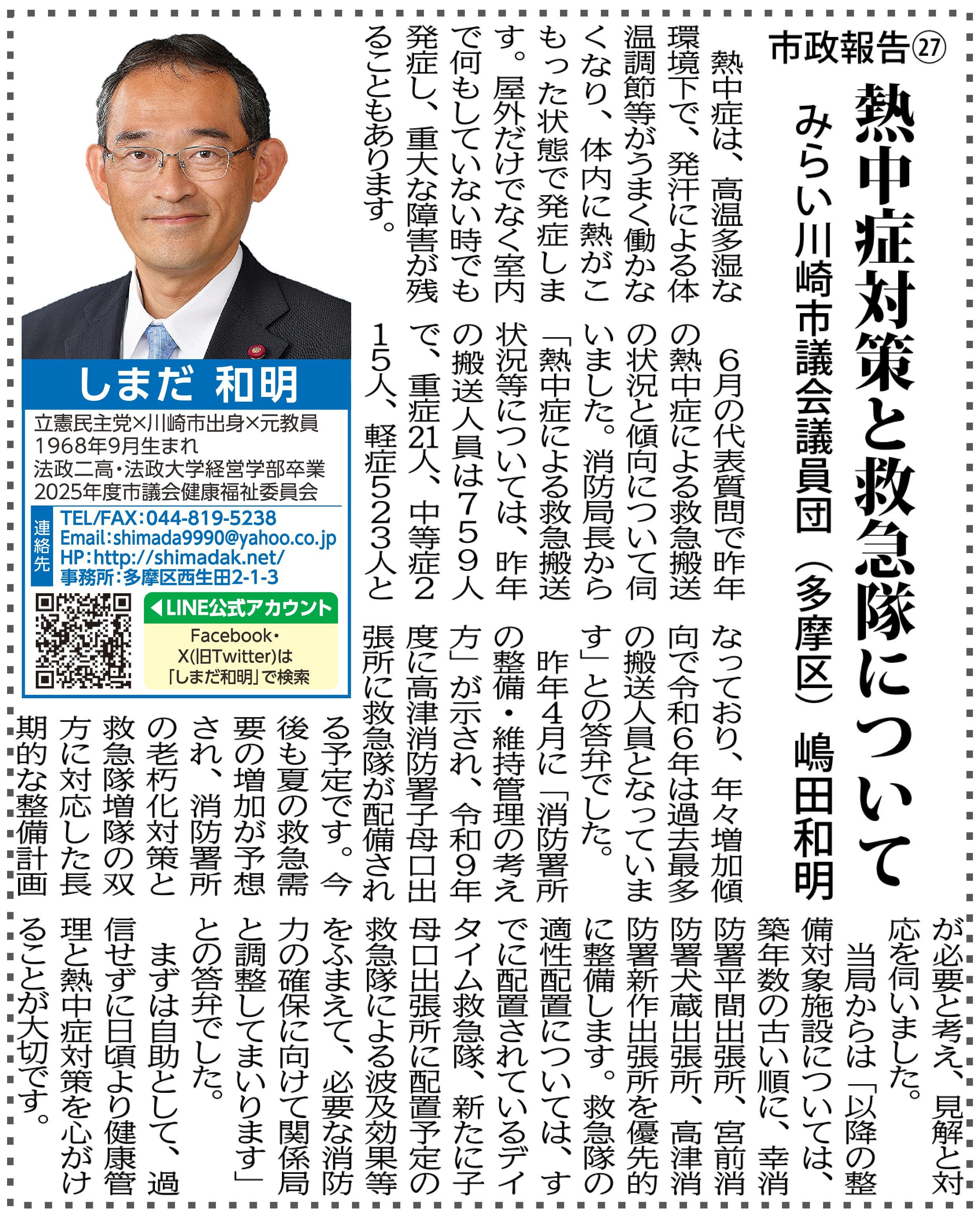 市政報告㉗ 熱中症対策と救急隊について |