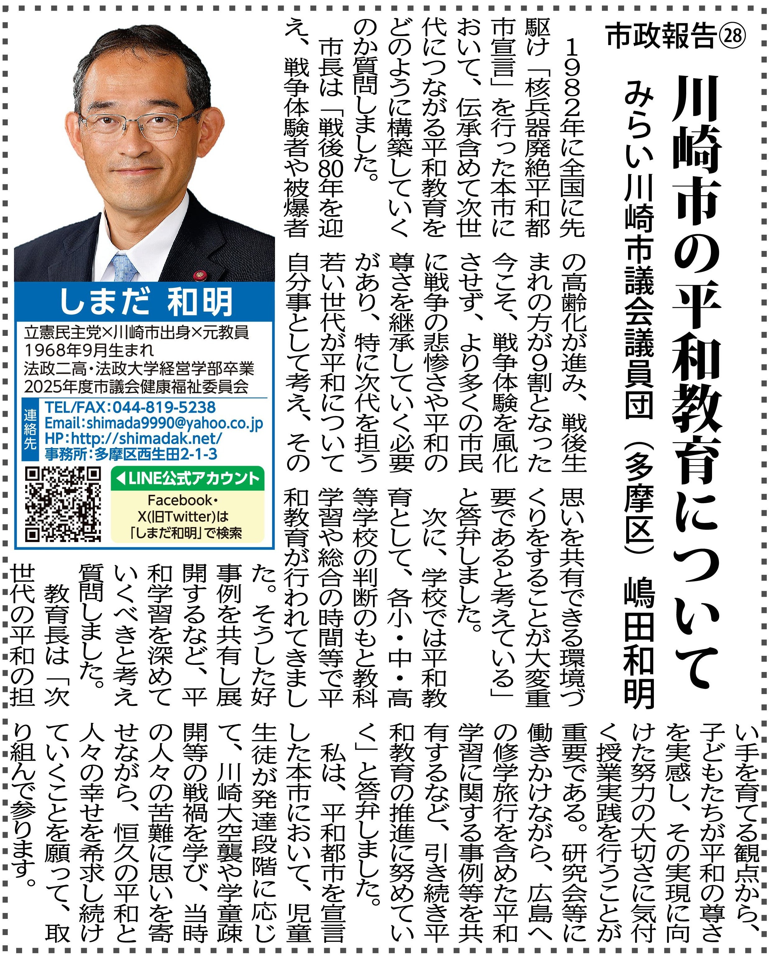 市政報告㉘ 川崎市の平和教育について |