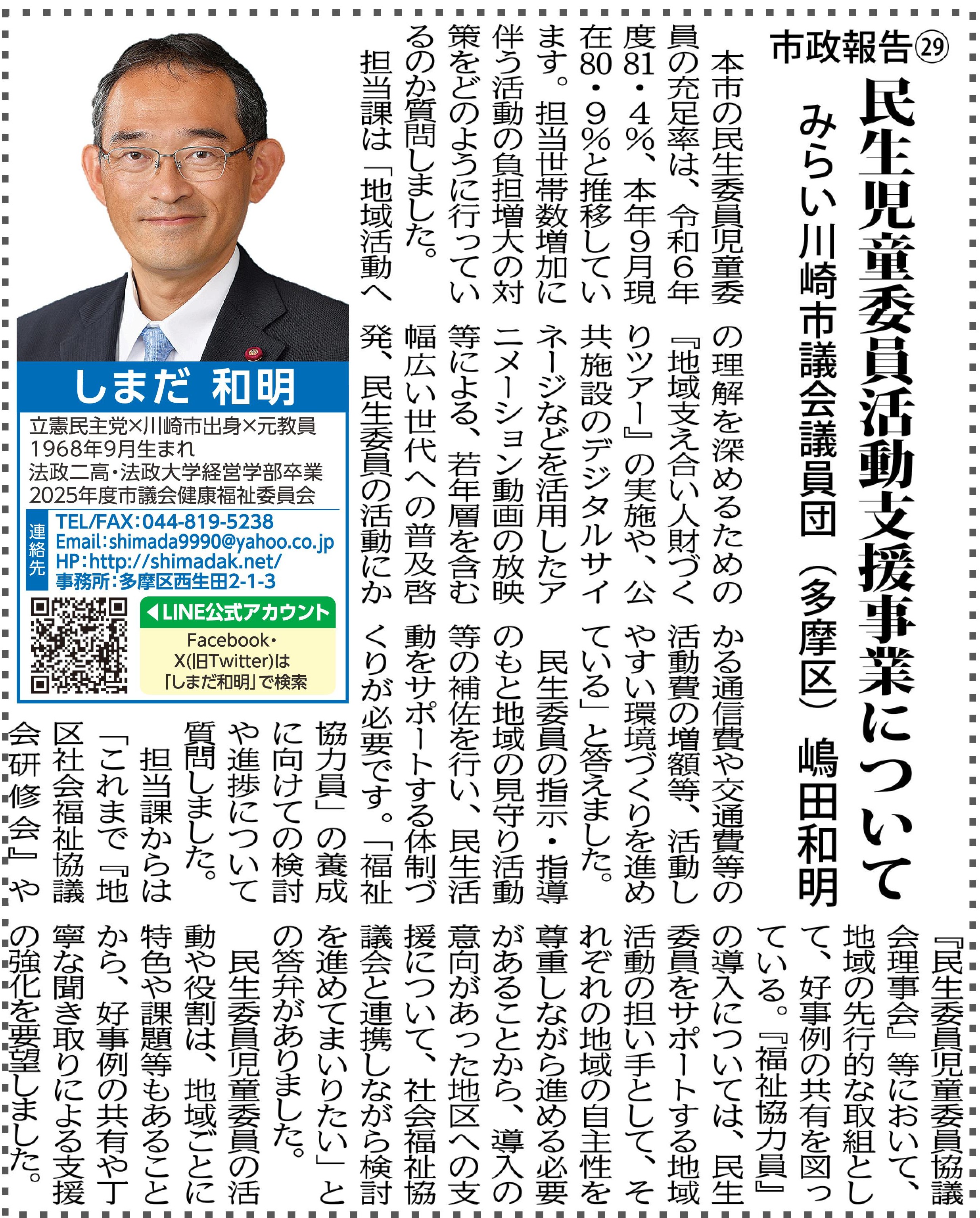 市政報告㉙ 民生児童委員活動支援事業について |