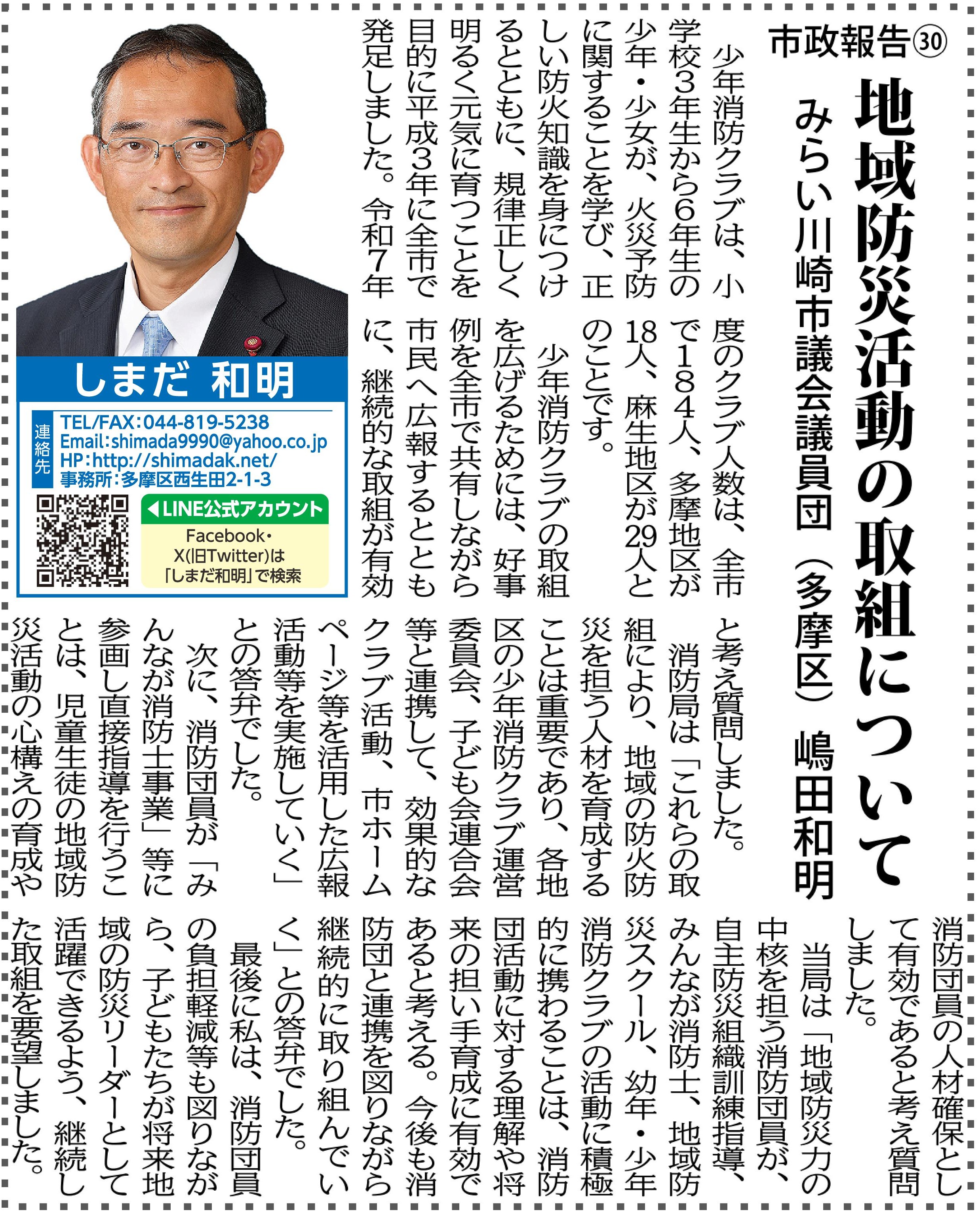 市政報告㉚ 地域防災活動の取組について |