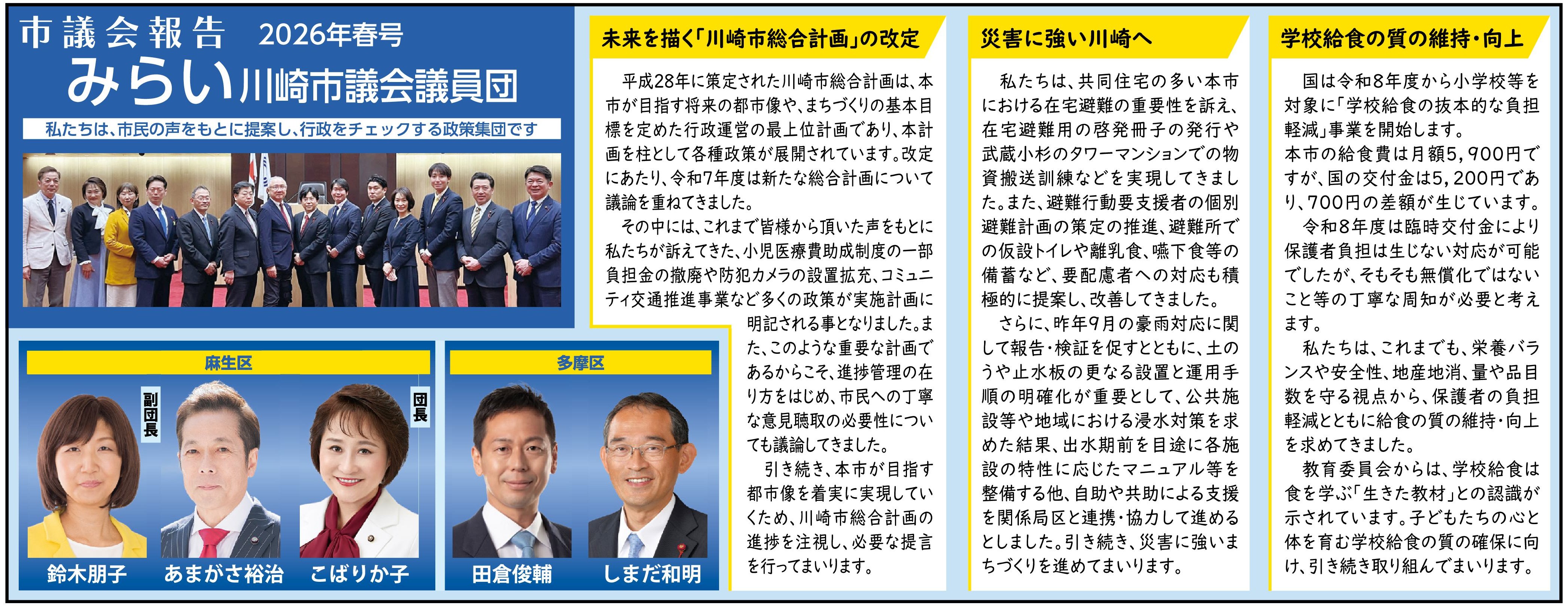 市議会報告 2026年春号 みらい川崎市議会議員団 |