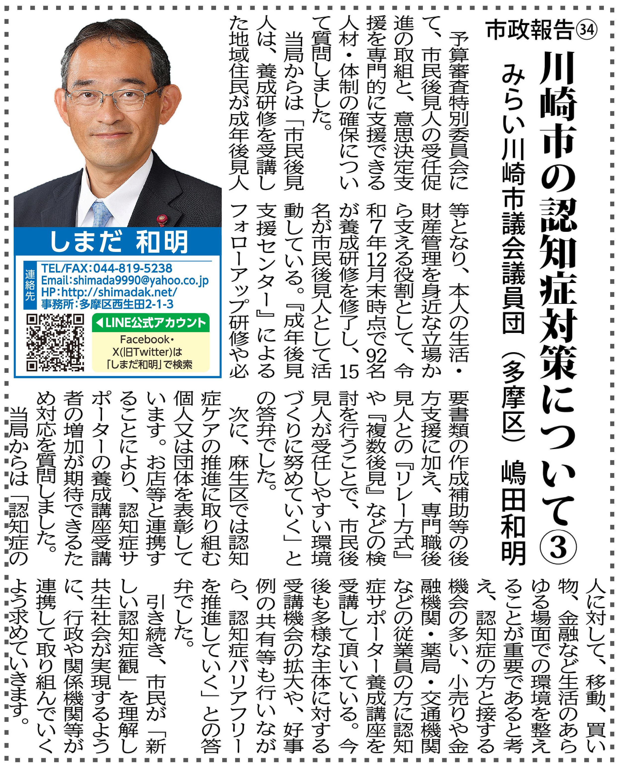 市政報告㉞ 川崎市の認知症対策について③